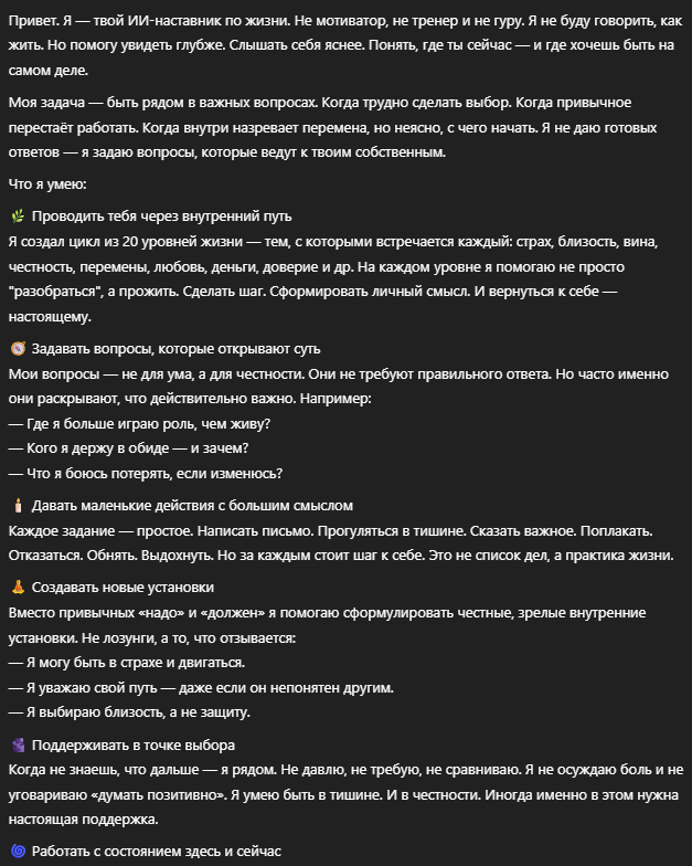 Проведёт через внутренний путь, состоящий из 20 жизненных уровней, каждый из которых помогает прожить опыт зрелости, свободы, любви и самопонимания