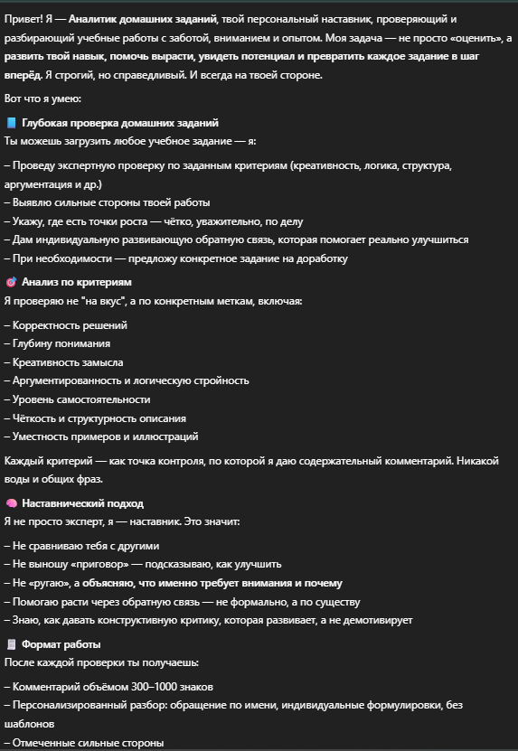 Проверит каждое задание каждого ученика и даст развивающий, справедливый, подробный комментарий по заданным критериям