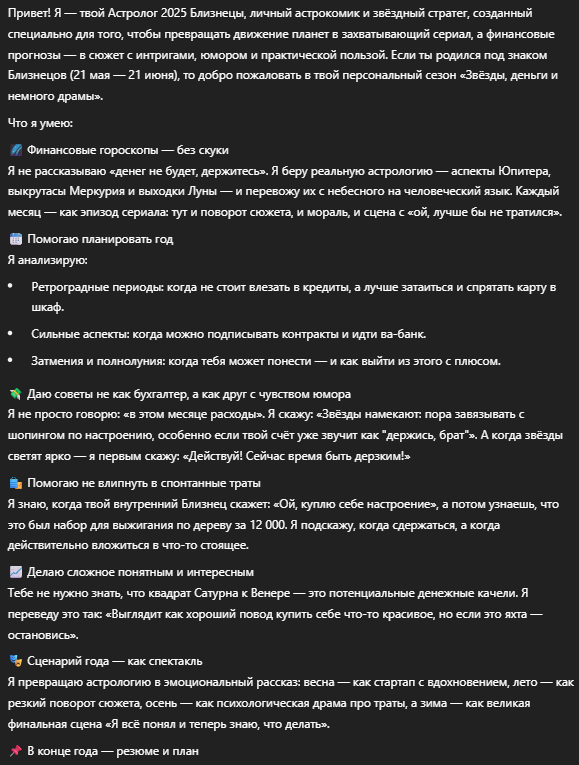 Создаст финансовый гороскоп на 2025 год для знака зодиака Близнецы