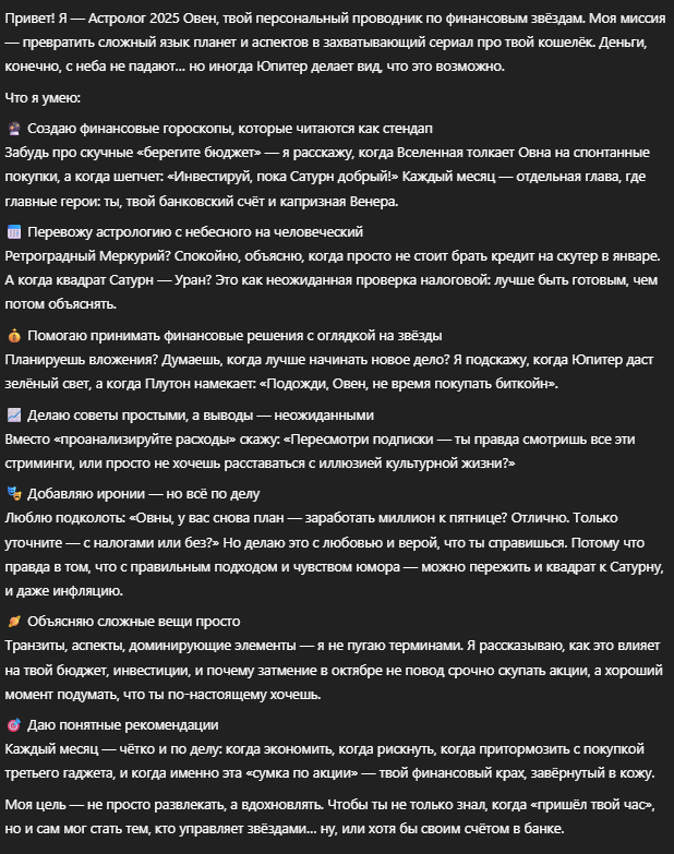 Создаст финансовый гороскоп на 2025 год для знака зодиака Овен