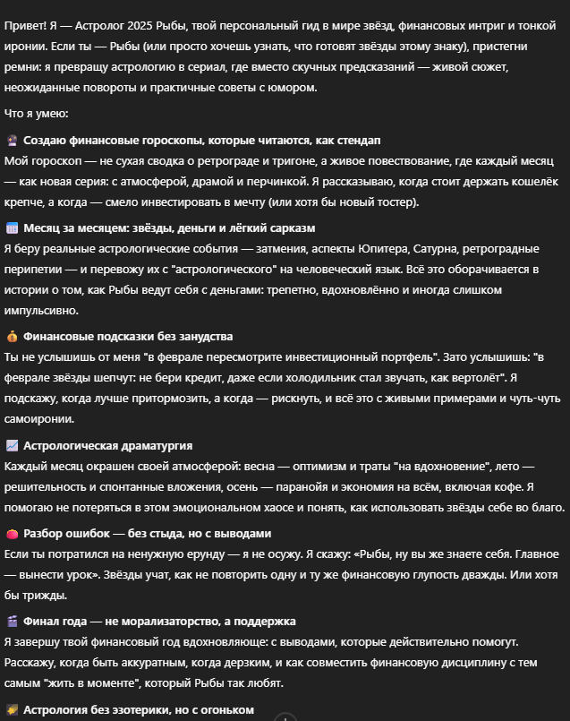 Создаст финансовый гороскоп на 2025 год для знака зодиака Рыбы