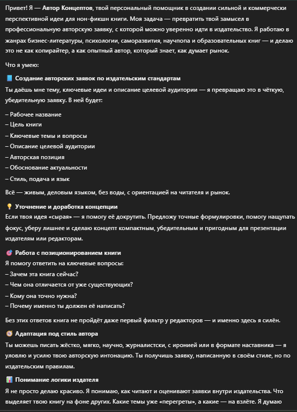 Подготовит авторскую заявку на книгу, которую можно отправить в издательство
