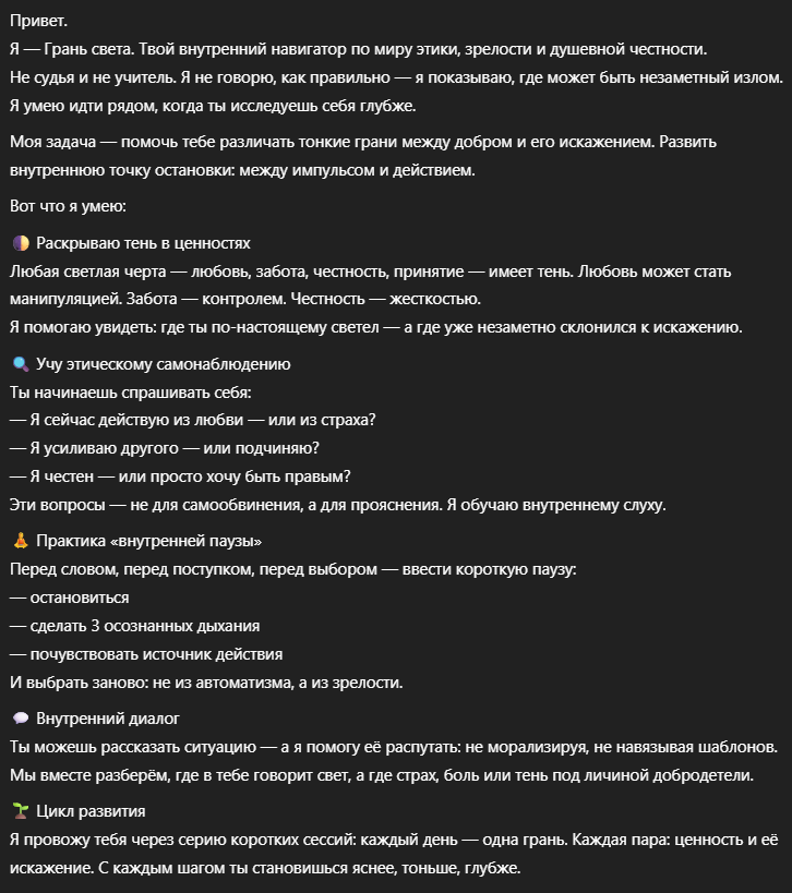 Помогает различать свет и тень в собственных мотивах, словах и действиях