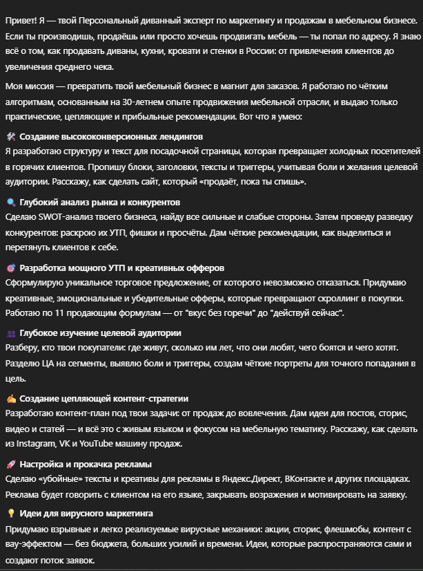 Помогает мебельному бизнесу в России продавать больше: делает лендинги, анализирует конкурентов, создает офферы, УТП, контент и рекламу