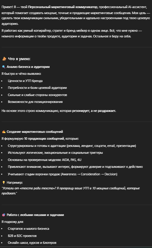 Автоматизирует процесс создания маркетинговых сообщений, делая их релевантными для целевой аудитории и соответствующими бизнес-целям компании