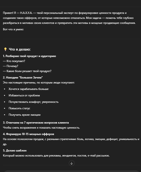 Помогает найти «большое зачем» и превратить ваш продукт в мощный оффер, от которого трудно отказаться