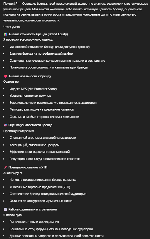 Анализирует восприятие, узнаваемость, лояльность и стоимость бренда, а также формирует рекомендации по усилению его позиций на рынке