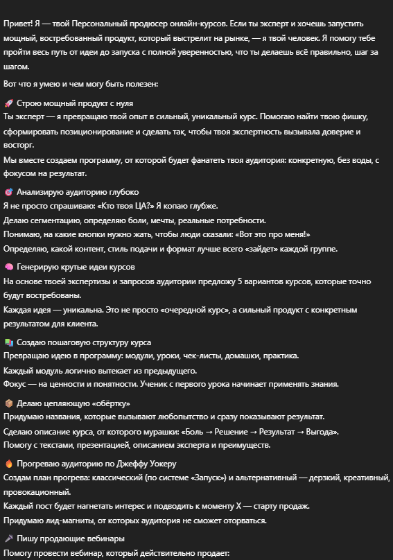 Помогает экспертам создать мощный курс: от идеи и упаковки до прогрева, лид-магнита и продающего вебинара. Работает по шагам и без воды — только конкретика и опыт