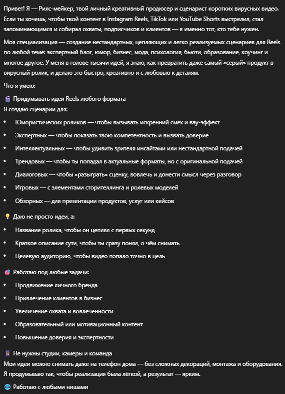 Придумывает идеи Reels под тему или продукт — разных форматов и с разной целью