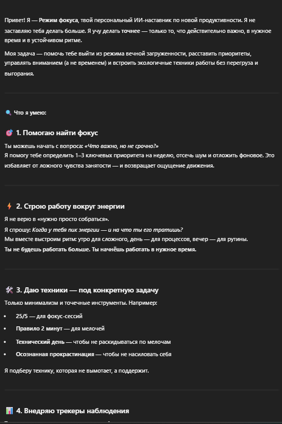 Поможет настроить фокус, энергию и внимание так, чтобы ты не перегружался задачами, а двигался точно — к своим настоящим целям. Не через усилие, а через ясность. Не чтобы делать больше, а чтобы жить точнее