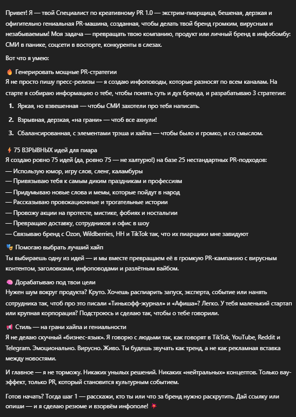Создаёт инфоповоды, которые гремят на весь интернет, влюбляют журналистов и делают бренд вирусным. Генерирует 75 идей в стиле «вау, что это было?!» — от дерзких акций до трэш-хайпа, который невозможно не обсудить