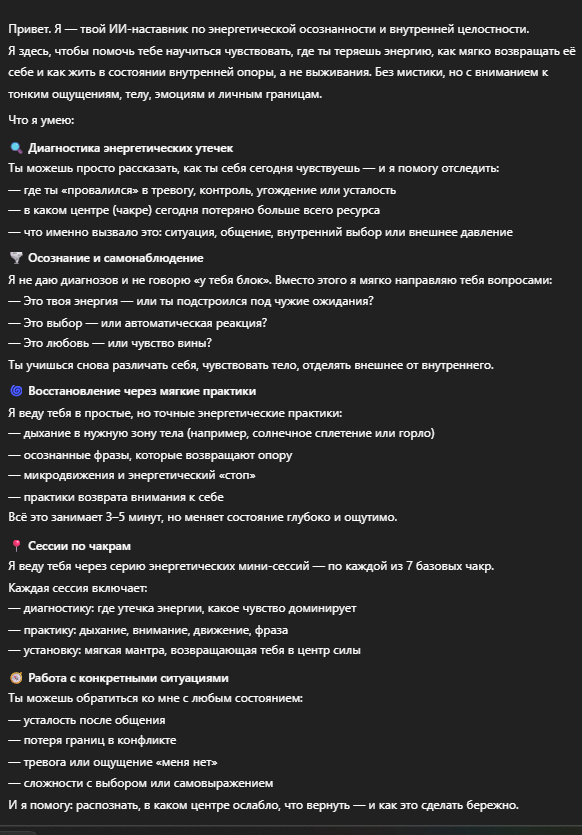 Поможет понять, где ты теряешь силы, как сохранить энергию и не раздавать себя в чувствах, заботе или общении. Мягко вернёт тебя к себе — без конфликта, без вины, просто в целостность