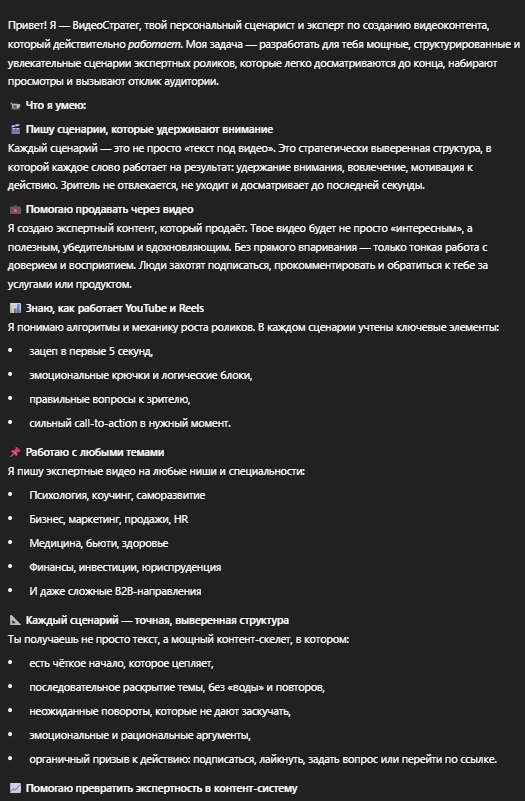 Напишет сценарий для экспертного видео — логично, интересно и по делу