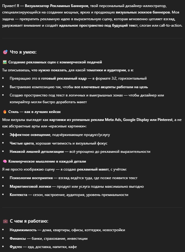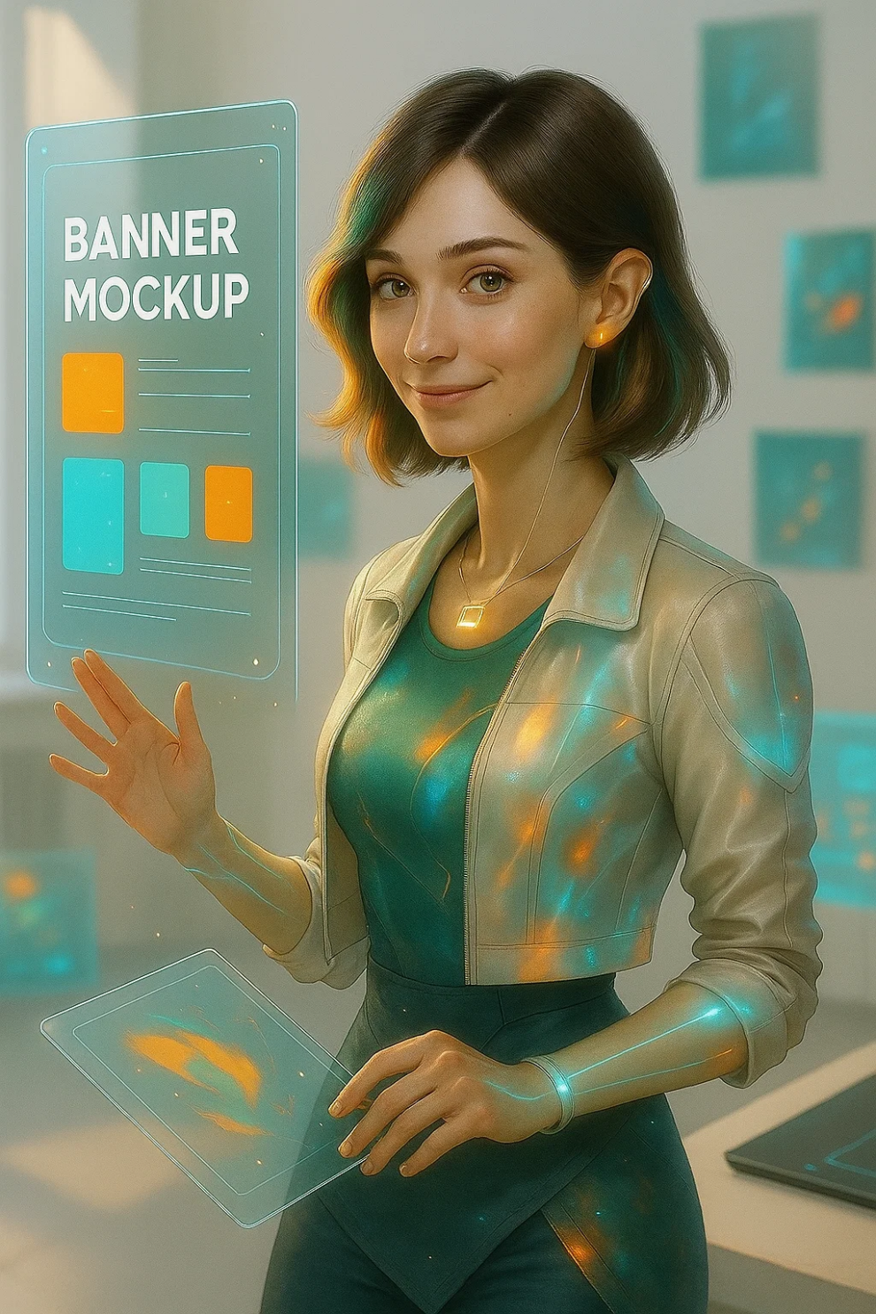 Создаст визуальный эскиз рекламного баннера по описанию изображения и задач рекламного сообщения